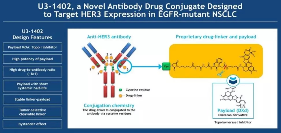 约57-67%的EGFR突变NSCLC患者携带一定程度的HER3蛋白表达,为此日本研发了HER3抗体偶联体药物U3-1402。